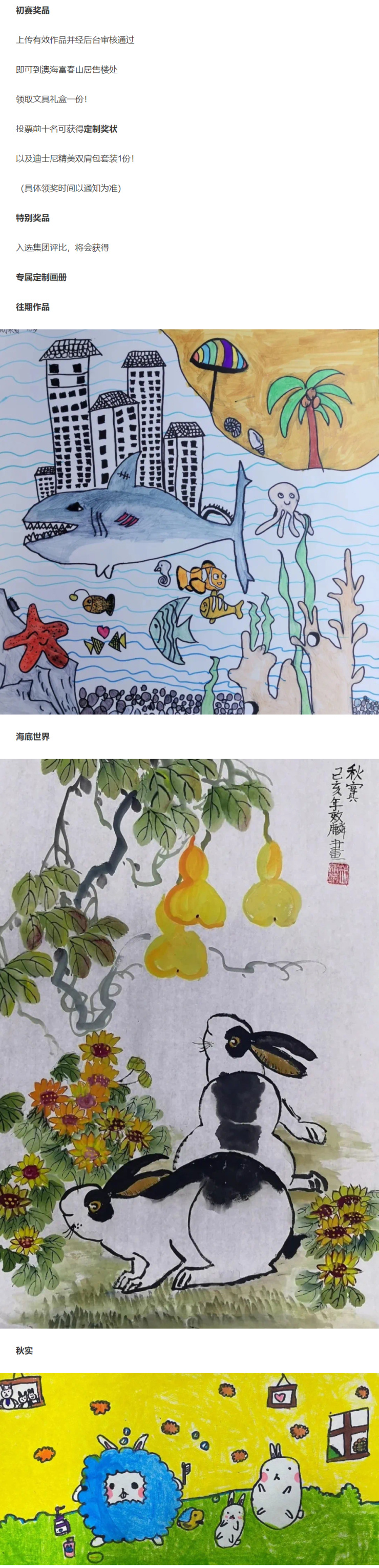 在童画家园里,孩子们用笔中的色彩描绘属于他们的童真童趣,用稚嫩的画笔勾勒出内心七彩的梦。在这个夏天,第六届“澳海杯”小画家选拔赛即将开始,让我们共同期待他们的奇思妙想,见证各位宝贝的成长。