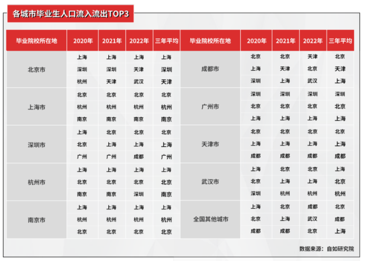 (2020年-2022年各城市毕业生人口流入流出统计排名,央广网房产频道制图)