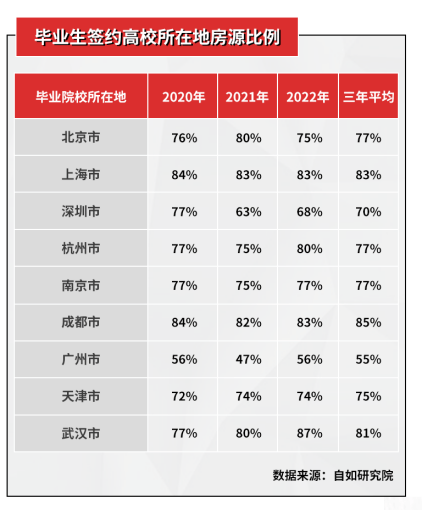 (2020年-2022年毕业生签约高校所在地房源比例,央广网房产频道制图)