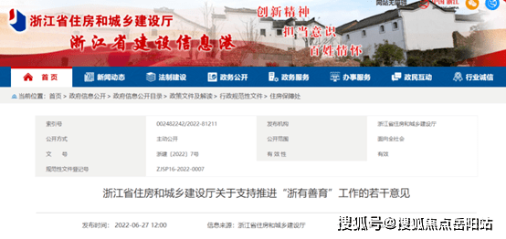 6月27日,浙江省住建厅发布《关于支持推进“浙有善育”工作的若干意见》。