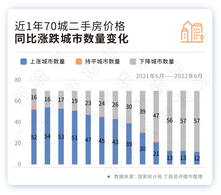 值得注意的是,从国家统计局公布的6月70城房价指数来看,新建商品住宅价格同比上涨的城市继续缩减至21个,同比下降城市则扩大至48个,二手住宅价格同比下跌城市达到57个。