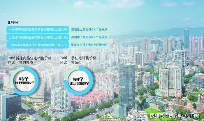 国家统计局16日公布的5月商品住宅销售价格数据显示,70城新房价格同比下降的城市达46个,比上月增加7个。一二线城市新房价格同比涨幅均有回落,三线城市同比降幅扩大。但从环比看,70城房价环比降势趋缓,新建商品住宅环比下降城市个数减少。