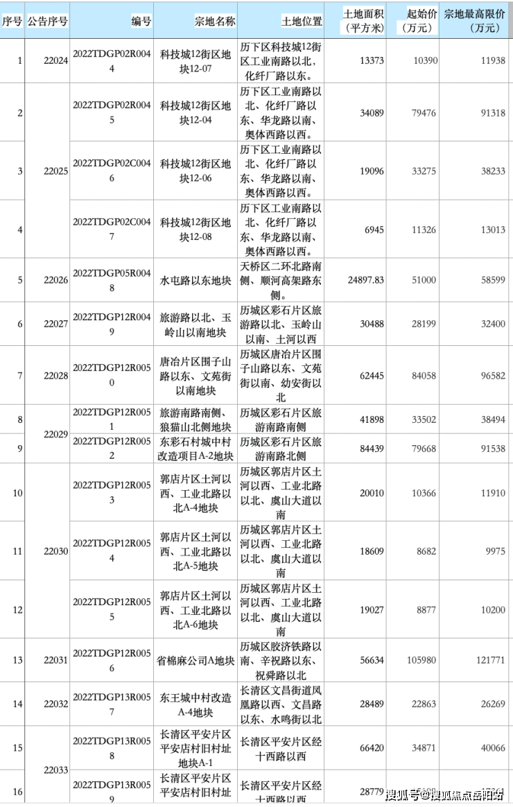 此次出让面积较大,价格较高的是历城区的省棉麻公司A地块,位于胶济铁路以南、辛祝路以东、祝舜路以北,总面积5.6634万平方米,起始价10.598亿元,较高限价12.1771亿元。该地块地上容积率在1.0-1.3,地下为小于等于0.8。竞得人须在2022年12月25日前付清全部土地出让价款。