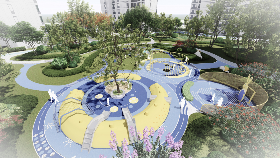 如果说自然是艺术的创作源泉,那么园林就是绘画艺术与自然的载体,它为人们提供一种向美而行的美好生活,亦记录着生命绽放的无数个绚丽瞬间。在环球融创岳阳环球中心,引力休闲公园、创想游乐公园和自然成长公园串联起人性化的多功能社区休闲场,收藏全龄共享的美好时光。规划约8000㎡的引力公园位于西侧核心区,融合了乐活浮力岛、室外水吧、林下画廊、星期天剧场、会客吧台、林隐包厢六大节点。在这里,风景的意义并不限于欣赏,而是和人一起绘制一幅动静皆宜的艺术生活画卷。规划约7000㎡的创想公园位于东侧核心区,北侧设有全龄化儿童游乐场,面积约 1000 ㎡,以创想活力岛+第三游戏场的理念打造,全年龄段覆盖,激发孩子们的想象和探索欲。南侧以阳光草坪为主,将人本关怀注入园林,融合自然景观与全龄生活空间,演绎兼具自然灵韵与人文温度的美好园境。规划约3000㎡的自然成长公园位于北侧核心区,区域大部分日照时间达到3小时,布置了自然课堂、老人健身区、单元会客厅等,为业主提供一处亲近自然的休闲场所。这里每一处观景廊台、步道的空间列阵和移步异景的色彩变幻,跨越在每个组团之间,感受随处可拾的匠心营造。在宏大的园林中,闲暇之余,与家人一起悠闲漫步,周围弥漫的是绿意盎然和醇净鲜氧;孩子嬉闹追逐,臻藏幸福的童趣时光;父母于花园中畅聊欢谈,安享惬意生活;连宠物都有天然游乐场,开心地撒欢……方寸之间皆是诗意和乐趣,人生的美满,在这里全都能实现。
