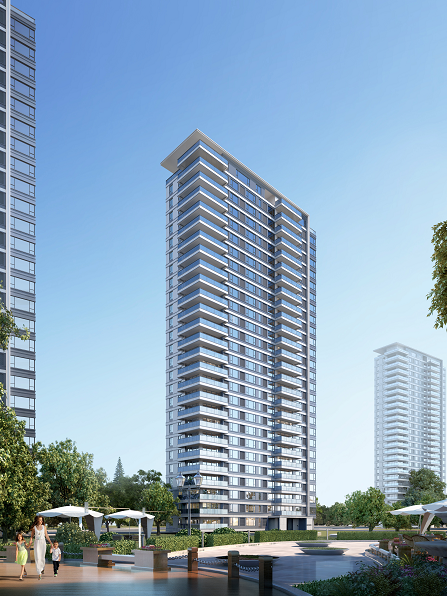 二期新品,代言时代新生的城市建筑,在潮流的更迭中始终沉淀着美学最初的精神。建筑采用高级灰与玻璃元素搭配,外立面采用真石漆材质,主阳台采用工艺更好的玻璃栏板,塑造出错位流动的形态节奏,打造出极富层次的美学体验。