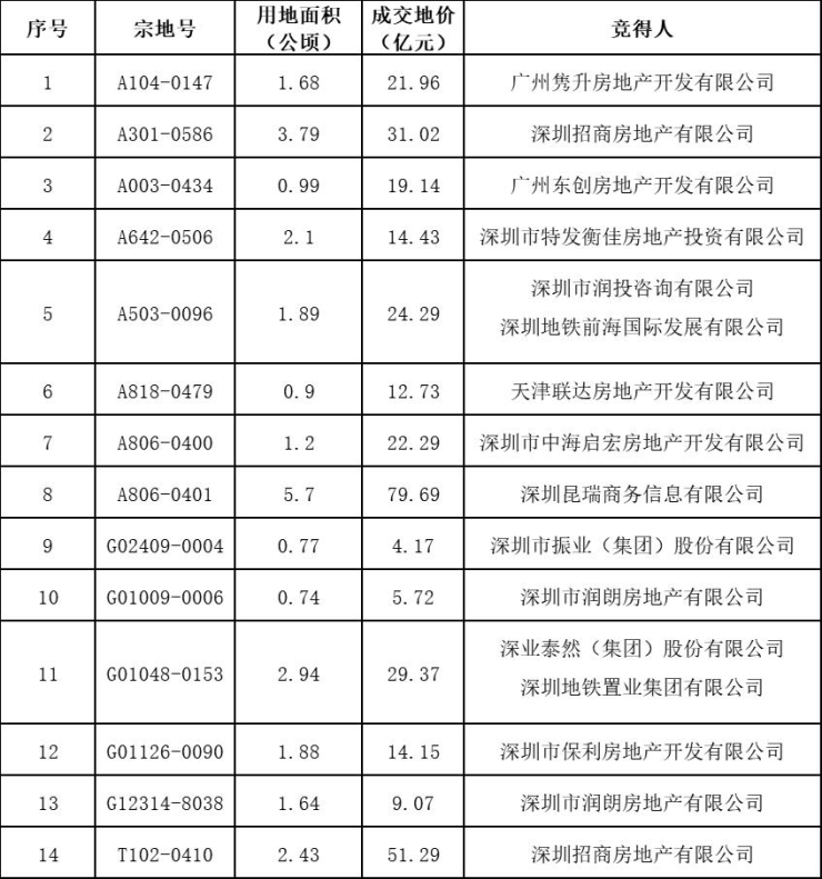 深圳市第二批集中供地:14宗成交2宗流拍,收金339亿元