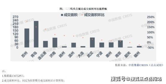 二线代表城市环比上涨84.4%,同比下降17.5%。环比上涨的城市中,苏州涨幅显著,为208.5%,青岛涨幅153.5%,位列第二,济南涨幅77.5%,排名第三;福州出现环比下降,降幅22.9%。三线代表城市成交量环比上涨56.1%,连云港涨幅较大,为131.7%,扬州涨幅居次位,涨幅68.3%;韶关出现环比下降,降幅1.3% 。同比来看,整体下降7.8%。