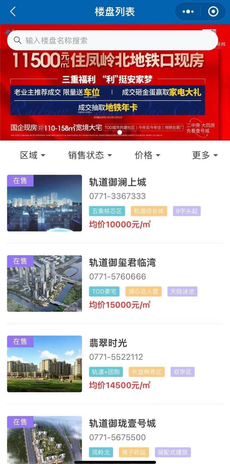 南宁轨道地产集团有限责任公司旗下部分项目。 南宁轨道地产集团有限责任公司小程序截图