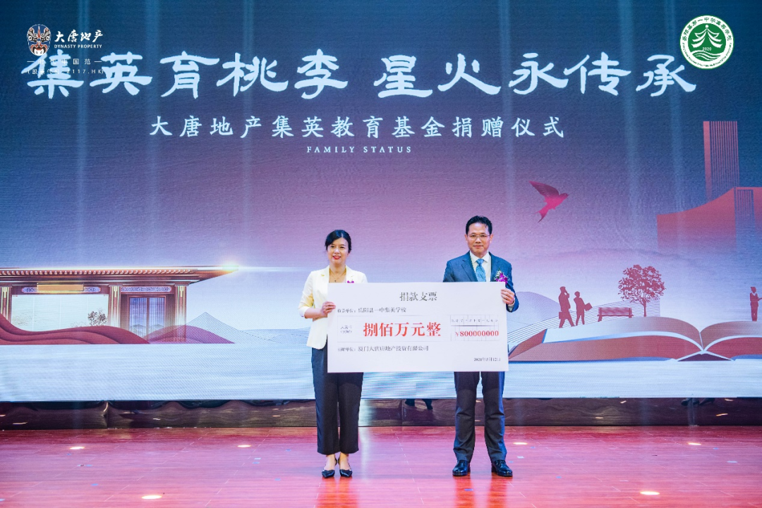 5月12日,大唐地产集英教育基金成立,大唐地产向集英教育基金捐赠爱心基金800万元。岳阳县委书记田文静,大唐地产集团总裁郝胜春,市、县教体局负责人等出席捐赠仪式。