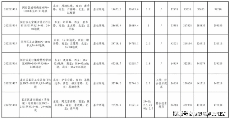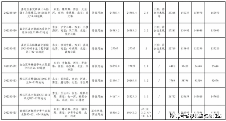 从土地面积来看,面积较大的为青浦区徐泾镇双联路北侧B6-01地块,土地面积约为7.71万平方米;面积排在第二位的是嘉定区嘉定新城(马陆镇)马陆南社区JDC1-2301单元23-01、29-01地块,土地面积约为7.35万平方米。