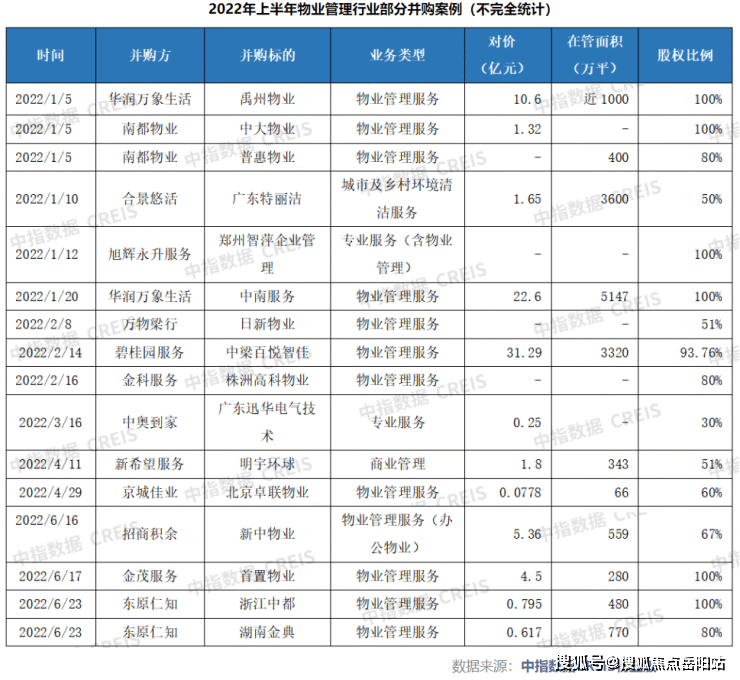《每日经济新闻》记者梳理还发现,上半年物业收并购不仅标的规模发生变化,业务类型方面也有所变化。