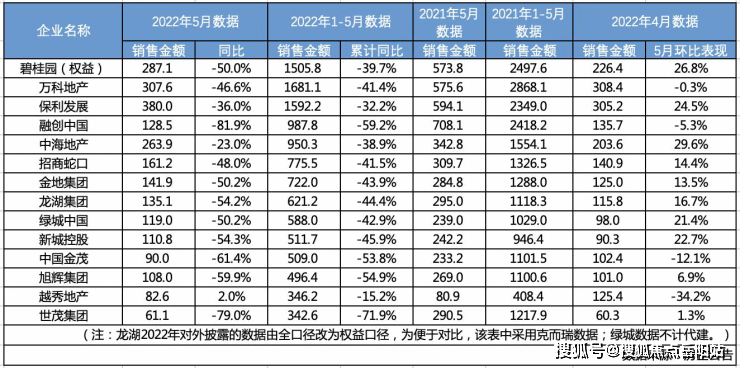 而回归到百强房企前5月销售业绩表现,据中指研究院监测数据显示,2022年1-5月,百强房企销售额均值为273.9亿元,同比下降50.7%。